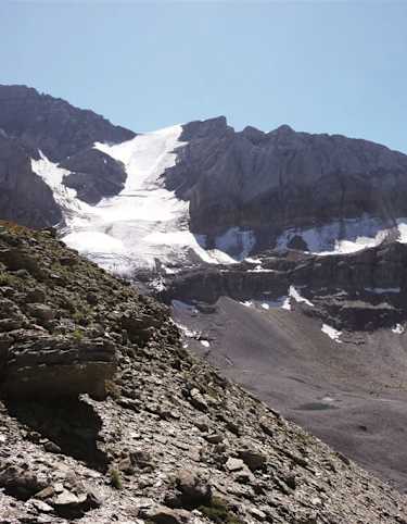 Über den Gletscher - je nach Zustand - nahe der Bouqetins und die Pigne de la Lé im Westen umgehend oberhalb der Séraczone an das Ende des Gletschers (ca. 3.100 m). Nun über Wegspuren und einem gutem Weg zur Cabane de Moiry (2.825 m).