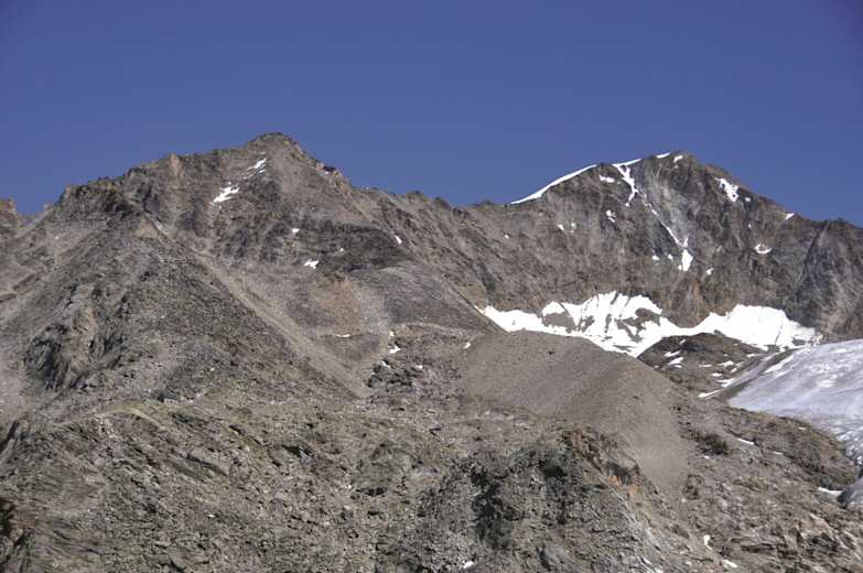Gross Bigerhorn (3.626 m) und Ulrichshorn (3.925 m) - Bergtour im Wallis zum Geniessen und für das Gemüt: Technisch ist sie einfach, verläuft aber schon in recht großer Höhe, was sie zu einer guten Akklimatisationstour macht. Das Panorama auf die umliegenden Gipfel der Walliser Alpen ist atemberaubend. Der Anblick der NNE-Wand der Lenzspitze vom Ulrichshorn ist sogar so eindrücklich, dass man sich dazu besser auf das vorhandene Bänkli setzt.