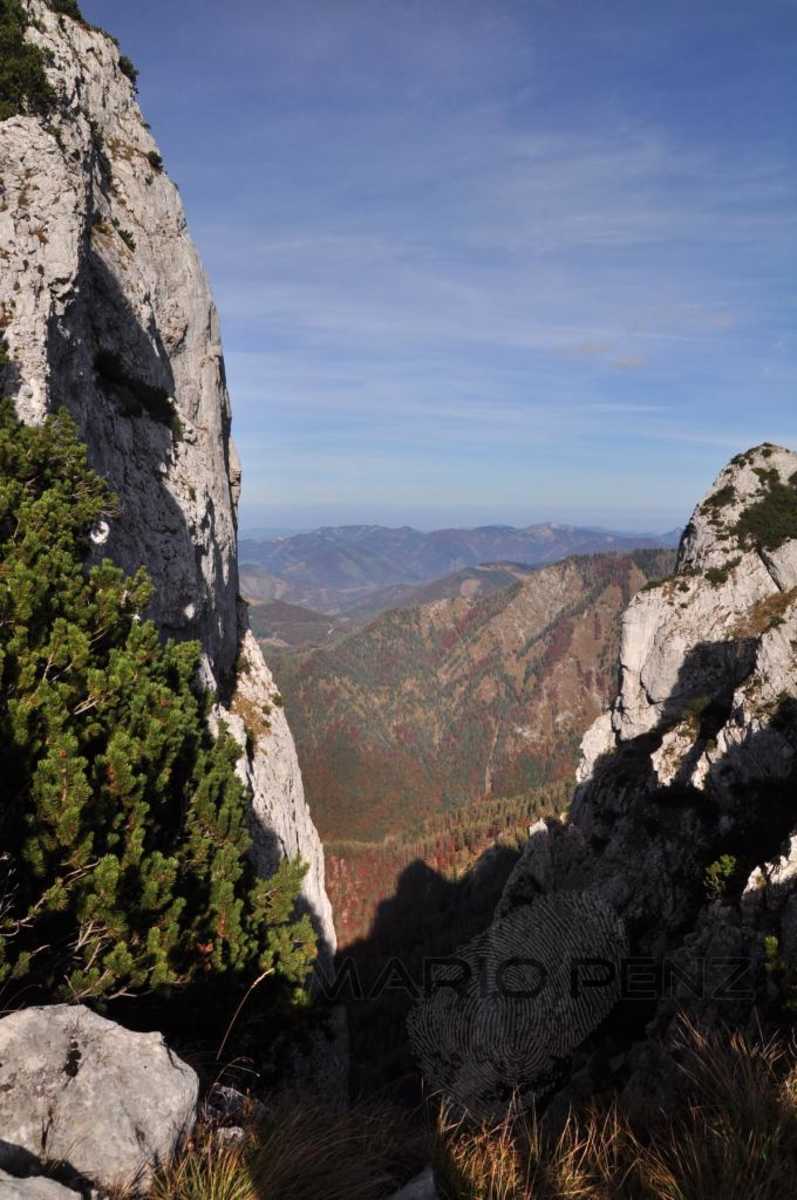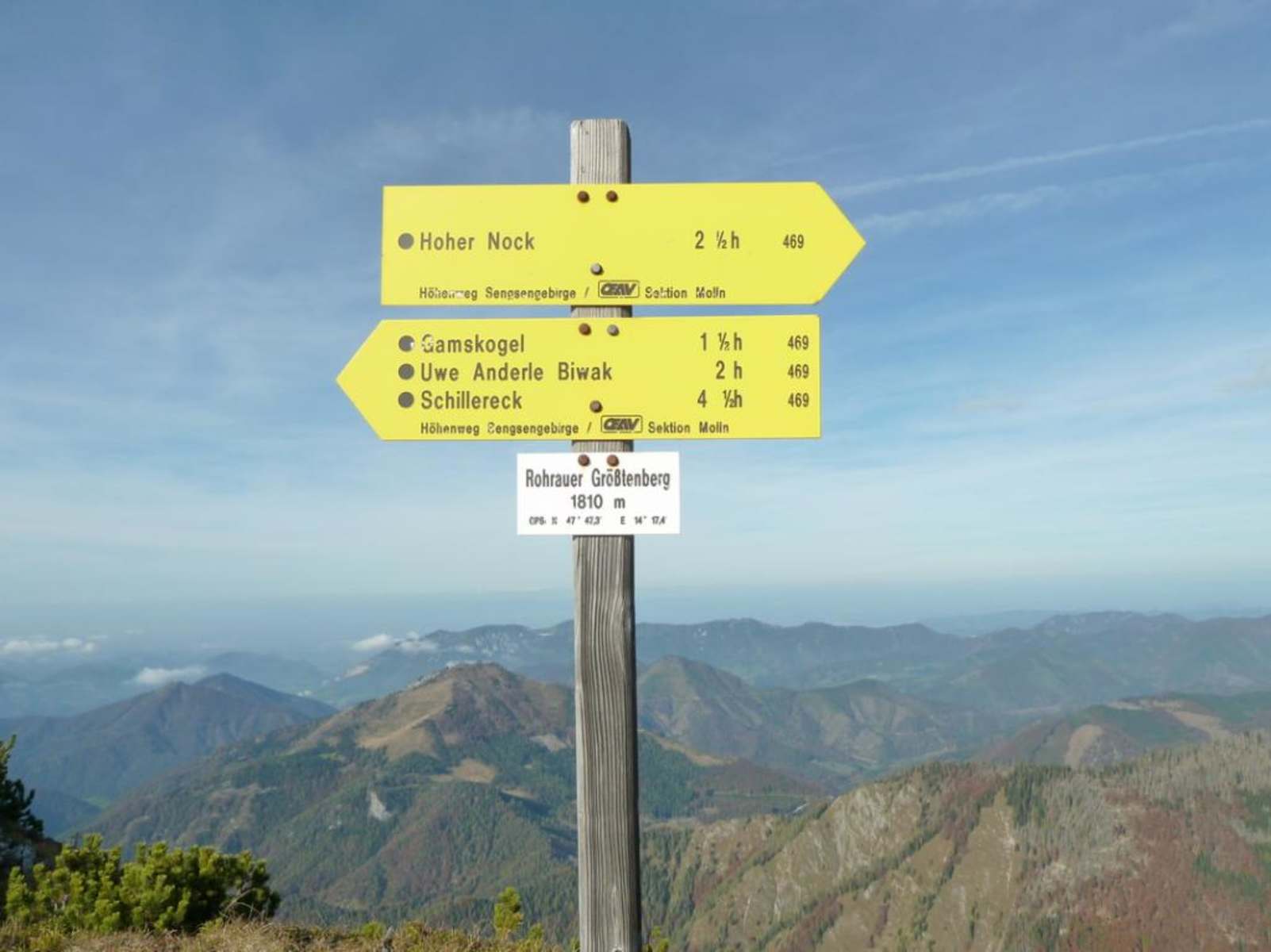 Das Zwischenziel, der Hohe Nock, liegt noch in weiter Ferne. Entscheidet man sich zum Weitermarsch, muss vorher noch der Gamskogel (1.710 m) und der Rohrauer Größtenberg (1.810 m) erklommen werden. An dessen Hinterseite muss man wieder einige Höhenmeter in den Rottalsattel absteigen, um kurz darauf abermals aufzusteigen. Der Hohe Nock bietet eine ausgezeichnete Rundumsicht auf seinem flachen Plateau, welches sich mit Latscheninseln, kraterähnlichen Dolinen (Achtung) und saftig-bunten Gebirgswiesen sehr abwechslungsreich darstellt. Jene, die sich für die gesamte Runde in einem Tag entschieden haben, werden wohl nicht all zuviel Zeit haben, die Aussicht zu genießen.