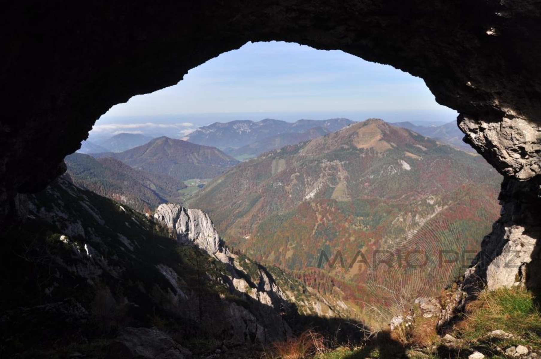 Nach einiger Zeit, spukt einem das urwaldähnliche Dickicht wieder auf einer breiten Forststraße aus. Dieser folgt man immer talabwärts, man ist bereits im Vorderem Rettenbachtal. Spätestens hier, auf dieser eher langweiligen, kerzengeraden Forststraße machen sich die Füße bemerkbar... jetzt heisst es nochmal Zähne zusammenbeißen, um bald das rettende Auto zu erreichen. Aber nicht zu schnell! Der Weg führt direkt an der Teufelskirche vorbei, ein Naturdenkmal ( NDOÖ 268 ) . Es handelt sich dabei um einen sagenumwobenen, gigantischen Kalkbogen mit einer gewaltigen Quelle in mystischer Umgebung! Unbedingt einen Besuch wert und falls die schöne Aussicht und die vergangenen Erlebnisse durch das Brennen der Wadenmuskulatur schon überrollt wurde, gibt es hier quasi eine Erlebnis- Auffrischung!