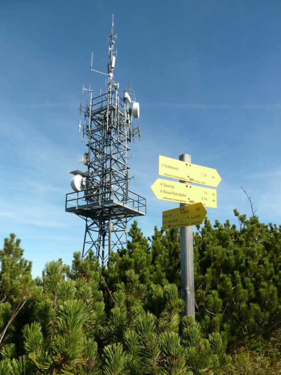 Auf einer Seehöhe von 1.500 m wird der Sender und somit der Höhenweg erreicht (1,5 bis 4 Stunden). Als erstes erreicht am den Gipfel des Schillerecks (1.748 m). Der Weg führt weiter durch Latschenwälder Richtung Hochsengs (1.838 m) mit teilweise schwierigeren Passagen, in denen absolute Trittsicherheit gefordert ist und man schon teilweise die Hände zu Hilfe nehmen darf. Auf einer Höhe von 1.583 m liegt das Uwe Anderle Biwak, welches Platz für 10 Personen bietet und zum Übernachten einlädt. Hier zweigt auch die einzige Flucht- bzw. Abbruchmöglichkeit ab: der Weg über die Kogleralm in den Langen Graben (Beschrieben in Tour: Hochsengs, Sengsengebirge Mitte). Der Weg ist aber nicht markiert!