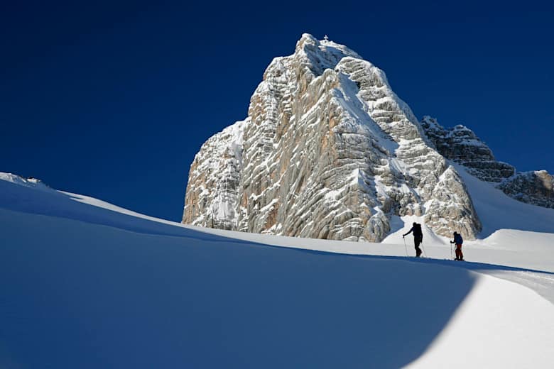 Als „schnelle Halbtagestour“ abgewertet, wird die Skihochtour auf den Dachstein gerne unterschätzt. Die geringen Aufstiegshöhenmeter in unmittelbarer Nähe zum Gletscher-Skigebiet täuschen darüber hinweg, dass es sich um eine ernsthafte Tour im hochalpinen Gelände handelt. Auch wenn v.a. an den Wochenenden viele Tourengeher unterwegs sind, muss man sich im Klaren sein, dass man sich im vergletscherten Gelände bewegt.