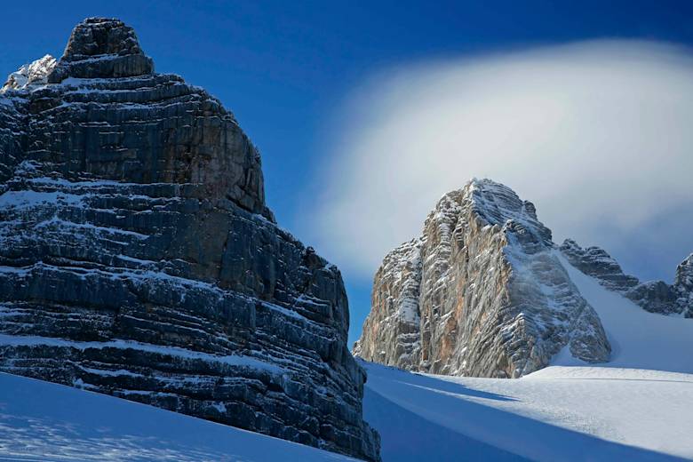 Der mächtige Gipfel des Hohen Dachsteins vom Föhn umspieltFoto: Herbert Raffalt