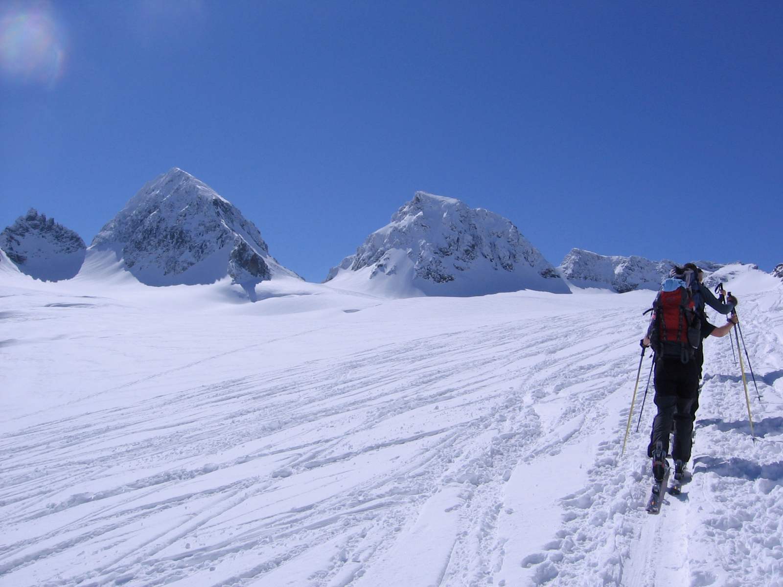 Ausrüstung: Skitourenausrüstung, Gletscherausrüstung erforderlich, Helm, Steigeisen und Pickel für den Gipfelaufstieg