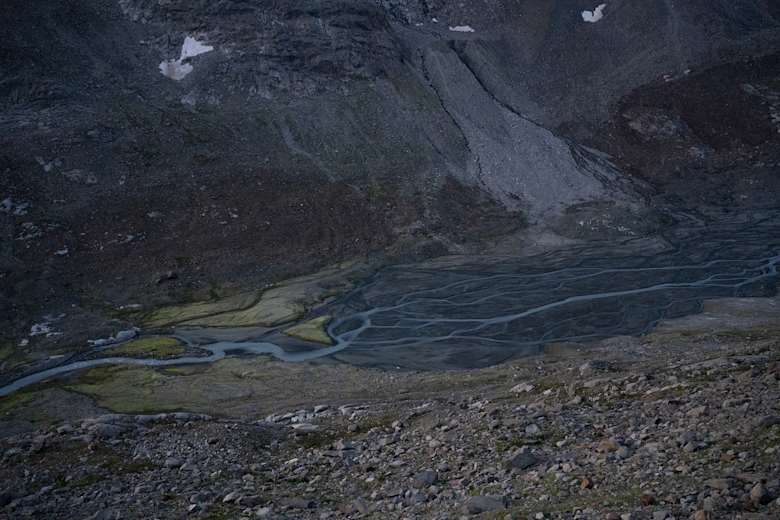 Der unterhalb des Gletschers mäandrierende Alpeiner Bach. Foto: Matthias Knaus