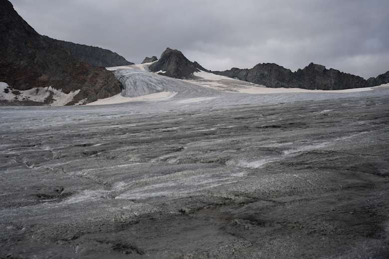 Alpeiner Ferner am 16. August 2024. An den Rand des flachen Gletscherbeckens (rechts) führt der markierte Zustiegsweg. Foto: Matthias Knaus