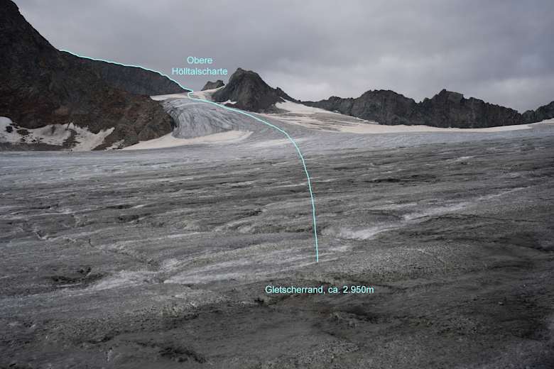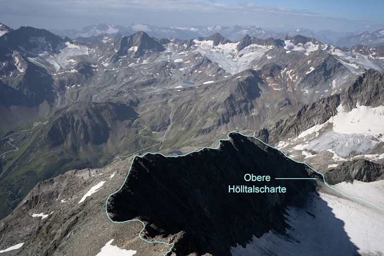 Achtung: Die auf manchen Karten eingezeichnete Hölltalscharte (3.174 m) liegt weiter westlich und ist nicht Teil der Route.
