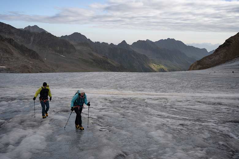 Genügend Flüssigkeit mitnehmen. Oberhalb der Franz-Senn-Hütte meist nur Schmelzwasser.