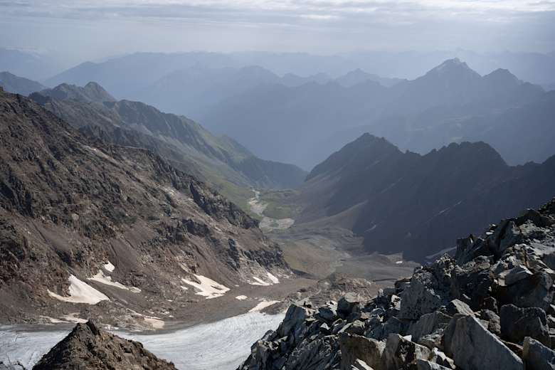 Blick von der Oberen Hölltalscharte zum Stubaier Gletscher. Foto: Matthias Knaus