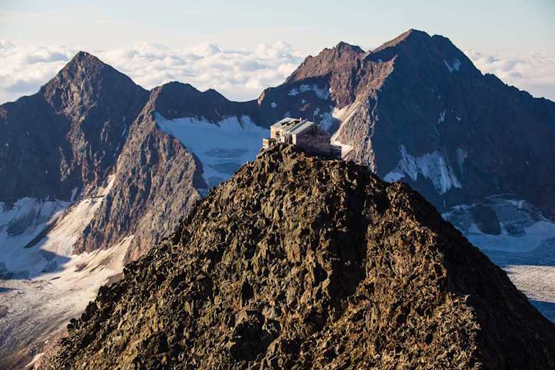 Vom Becherhaus steigt man entlang des ausgeprägten Felsgrates zum Signalgipfel (3.393 m) auf - einige Seilsicherungen erleichtern den Anstieg, auf dem man ohne Steigeisen auskommt.