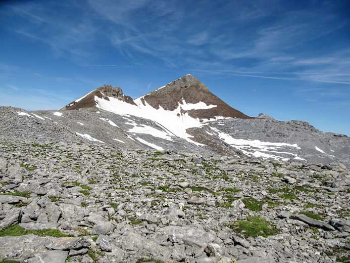 Über Firn und Felsblöcke Richtung Osten zum Steinmandli auf dem markantem Egg. Über eine Felsstufe absteigen und über Geröll und Schutt südwärts zum Blüemlisalpfirn. Dieser wird auf etwa 2.540 m Höhe erreicht.