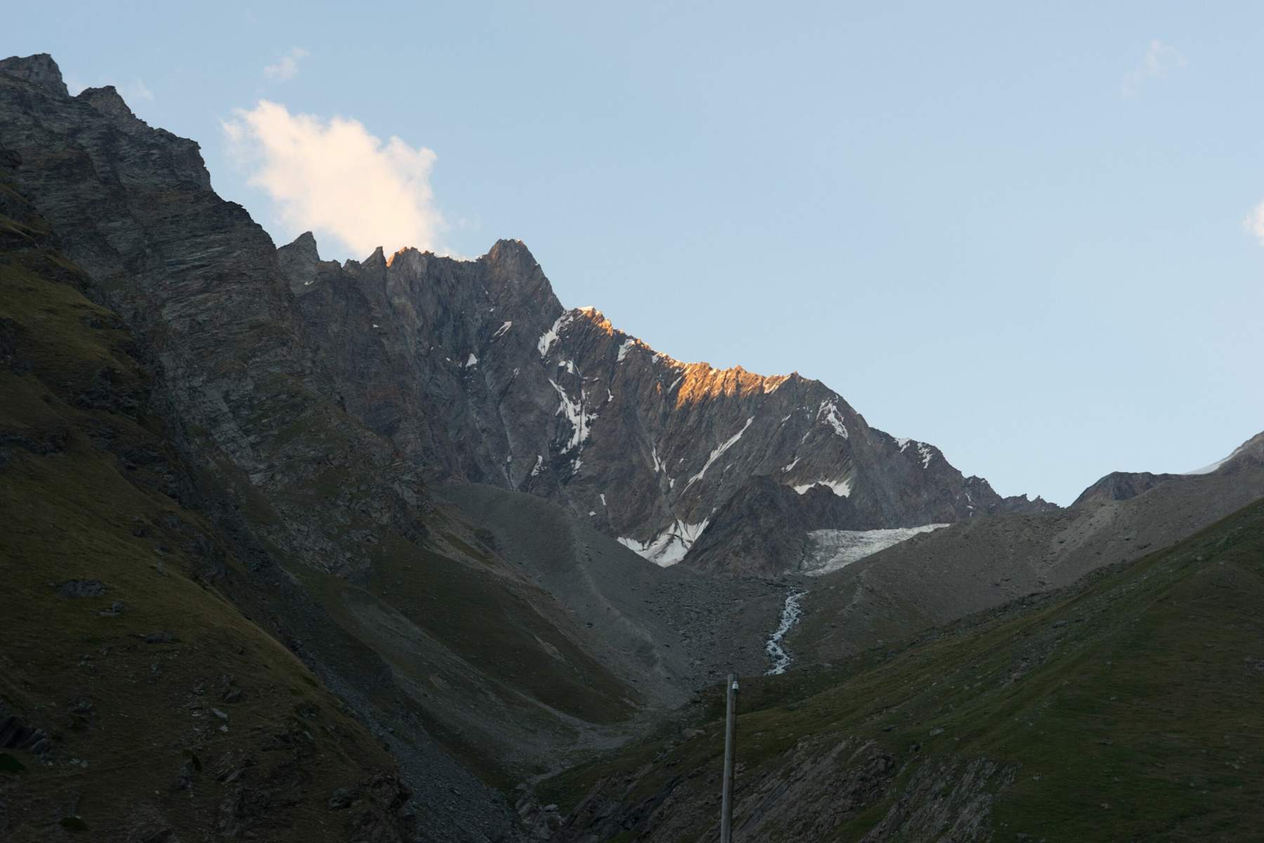 1.600 Hm überwindet man vom Bergdorf Ottafe (Ottavan) auf dem Weg zum Mischabeljochbiwak: Der Anstieg beginnt gemütlich über die Forststraße (wer ein Mountainbike hat, darf schieben und freut sich beim Abstieg umso mehr). Dann folgt man dem Wanderweg entlang des Rotbachs und einen Moränenrücken und kommt oberhalb des Weingartensees vorbei (3.058 m).