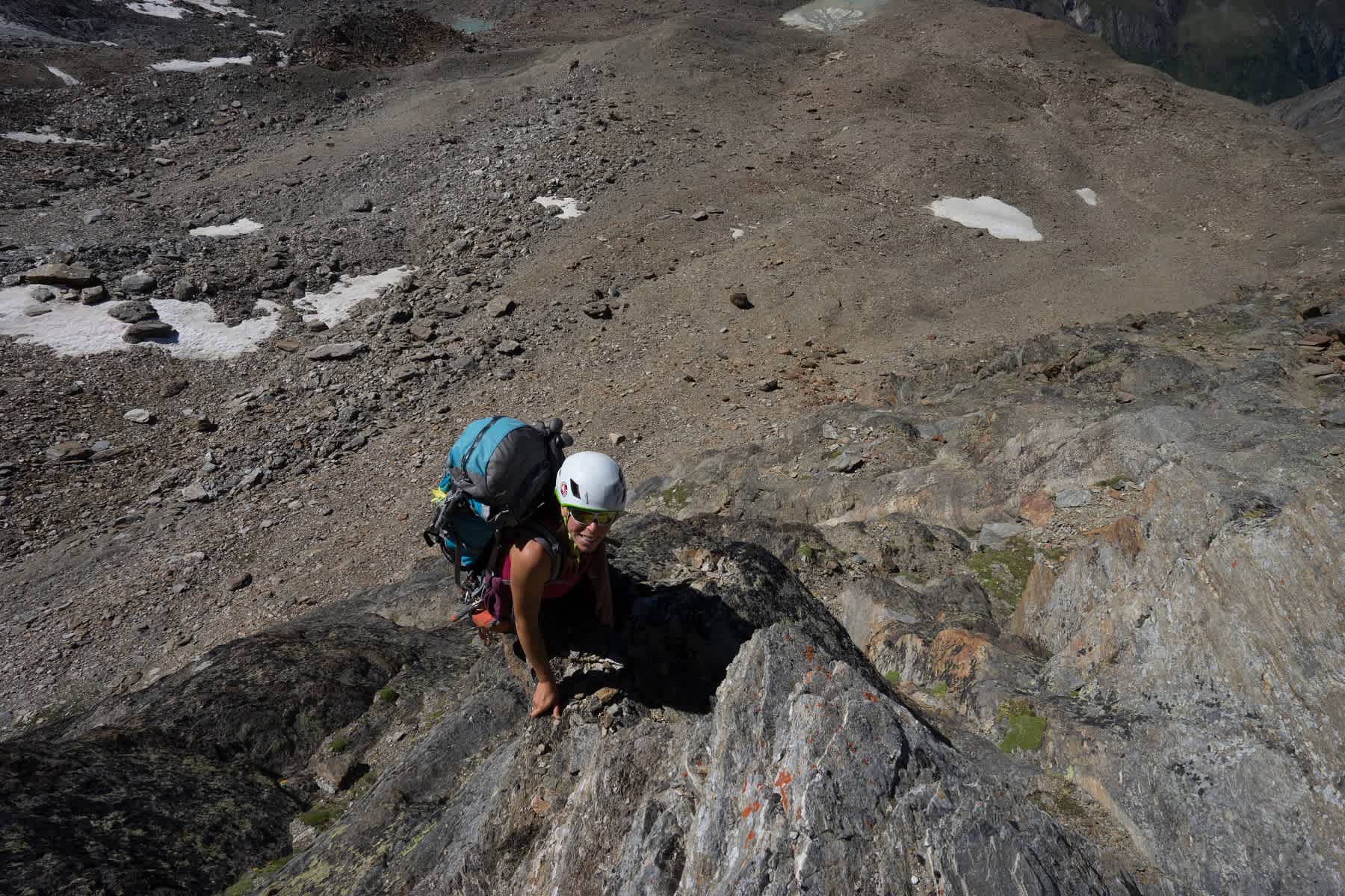 Den Südostgrat (Mischabelgrat) erwischt man meist einsamer und exklusiver als andere Grattouren in den Walliser Alpen, aber nur selten in perfekten Bedingungen. Es warten Felspassagen (bis III), Firnschneiden und ein aussichtsreiches Panorama. Wer mit teils brüchigem Felsen gut umgehen kann und auf scharfen Firnpassagen die Nerven bewahrt, findet hier eine unvergessliche Viertausender-Tour.