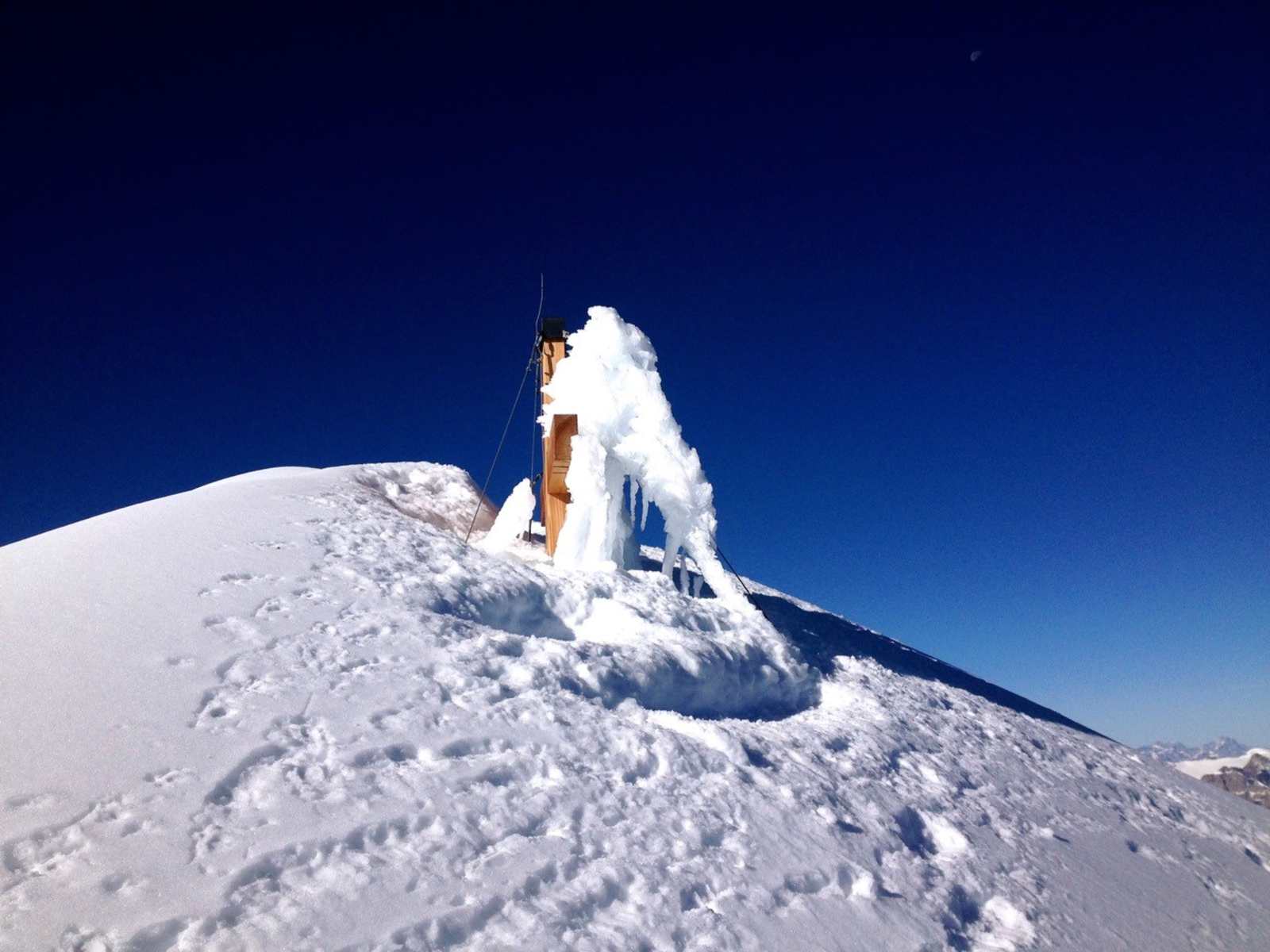 - Wysse Frau: vom Sattel zwischen Ufem Stock und Wysse Frau zu Punkt 3201 steigen und dann weiter dem steilen NW-Rücken (meist Firn bzw Eis) zum Gipfelaufschwung. Über brüchige Felsen (zementierte Eisenstangen) zum Gipfel (3-4 h Aufstieg)