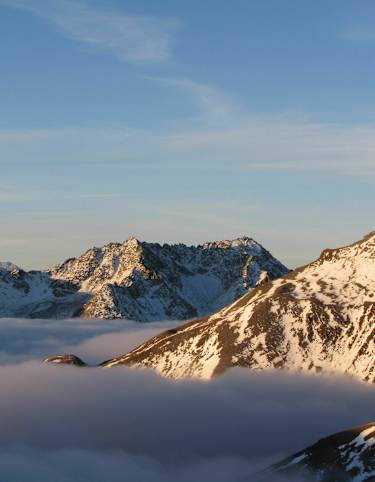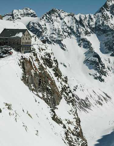 - Schlüsselstelle: Orientierung bis zum Gletscher, zwei schwierige Stellen sind mit Ketten und Trittstufen versichert. Ausrüstung: Standard-Gletscherausrüstung, Steigeisen, Pickel, steigeisenfeste Bergschuhe