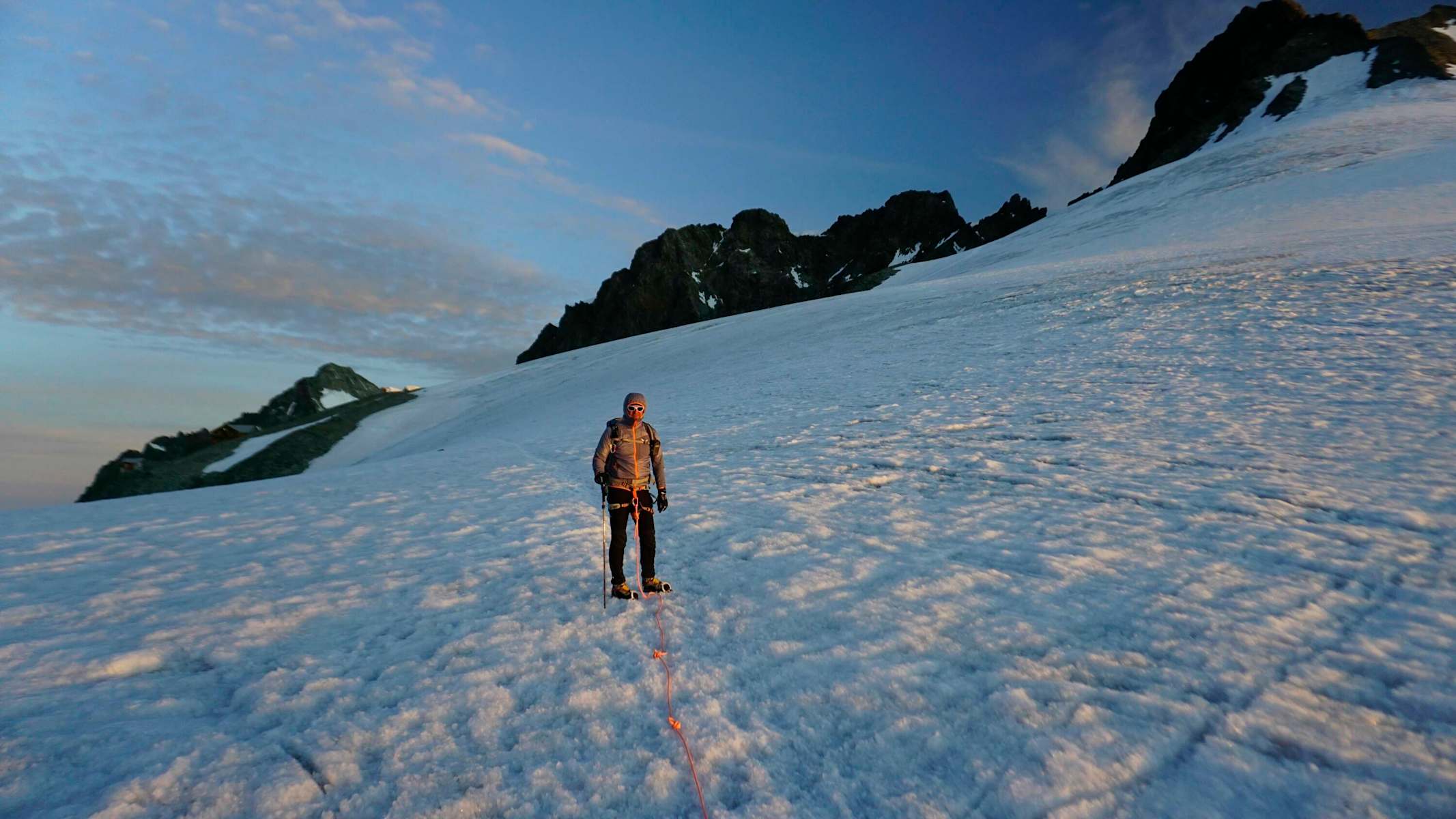 - Ausrüstung: Standard-Gletscherausrüstung, Steigeisen, Pickel, Helm, klettertaugliche, steigeisenfeste Bergschuhe
