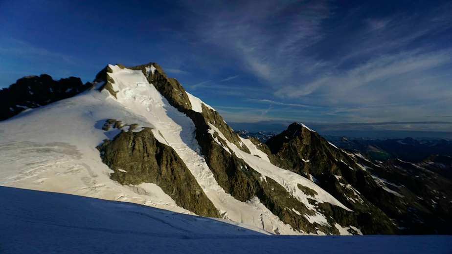 5:40 Uhr: Links hinten sieht man noch die Marco e Rosa Hütte Foto: Stephan Mitter