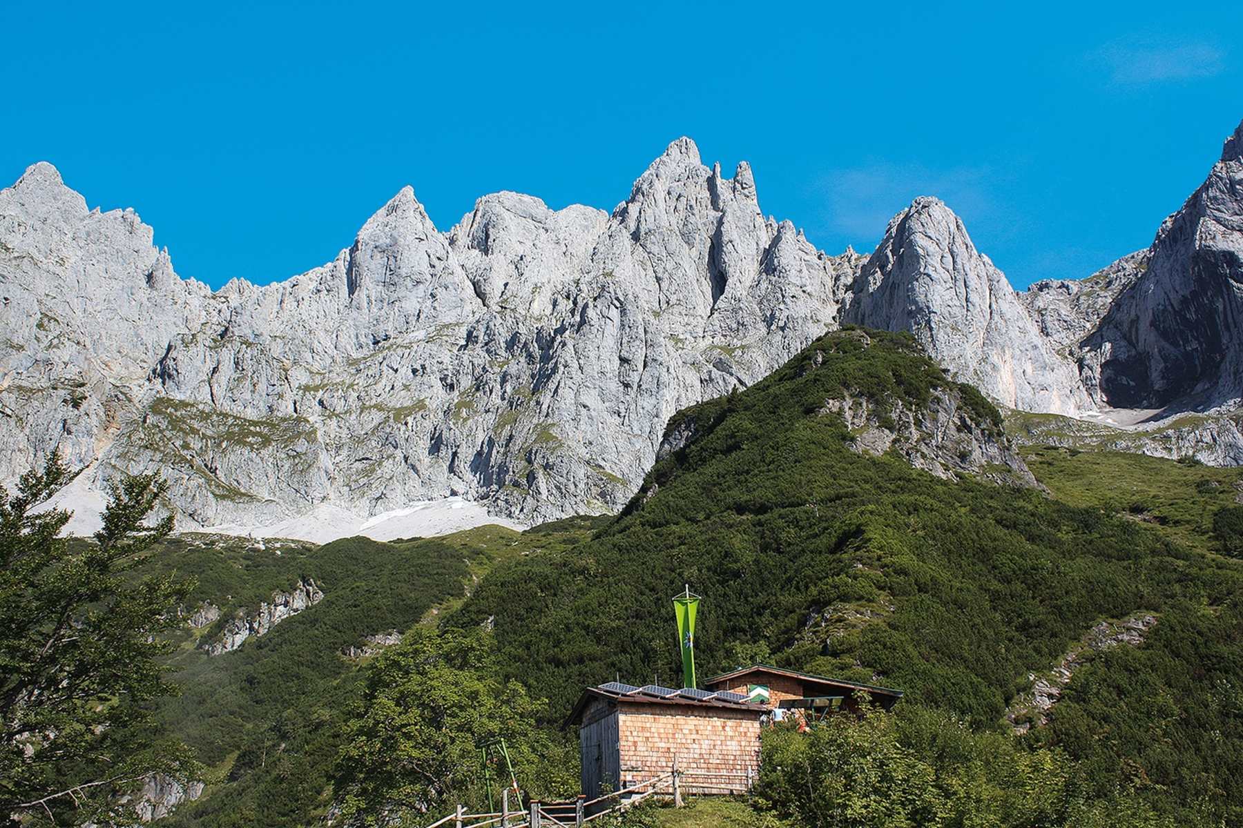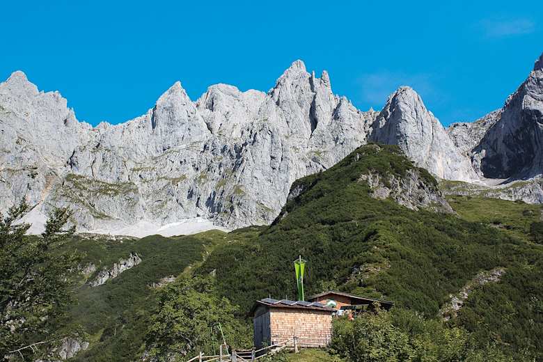 Das großartige Felsszenario über der kleinen Ackerlhütte. Foto: Thomas Otto