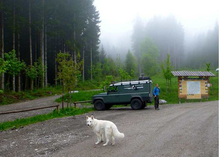 Beim großen gebührenfreien Karwendelparkplatz, gleich neben dem Schlosshof in Thaur.