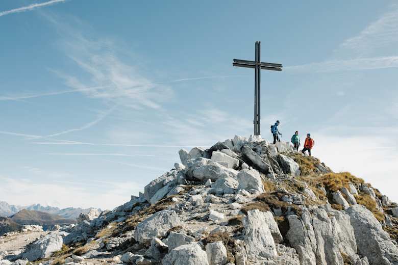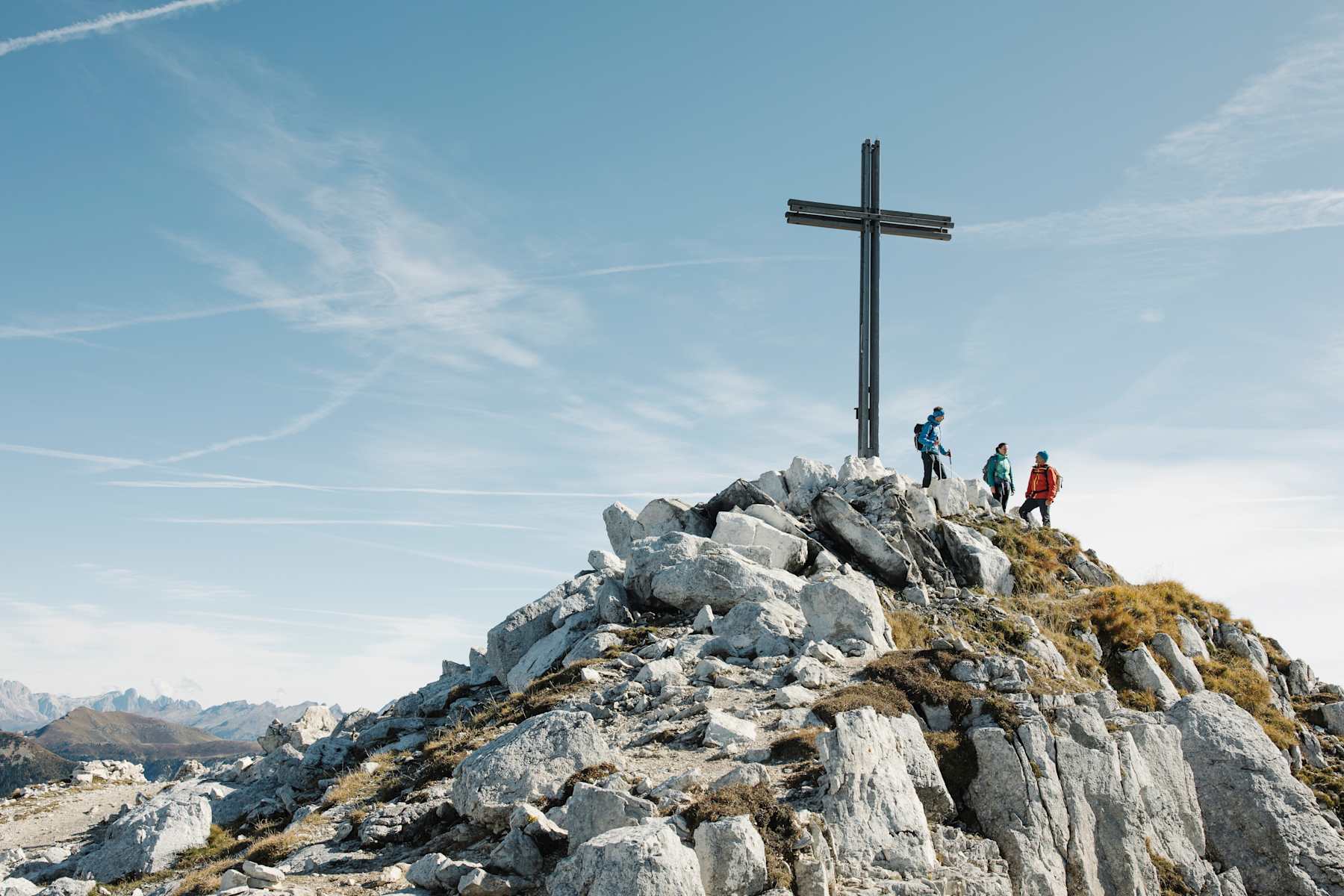 Herrliche Bergwanderung mit Ausblick auf die Gipfel der Fleimstaler Alpen in Südtirol. Das Jochgrimm liegt eingebettet zwischen dem Schwarz- und Weißhorn (2.313 m) und bietet eine traumhafte Aussicht auf die Dolomitengipfel der Rosengarten- und Latemargruppe. Von dort führt die beliebte Rundtour ohne große Anstrengung auf den kreuzbestückten Zwillingsberg des Schwarzhorns.