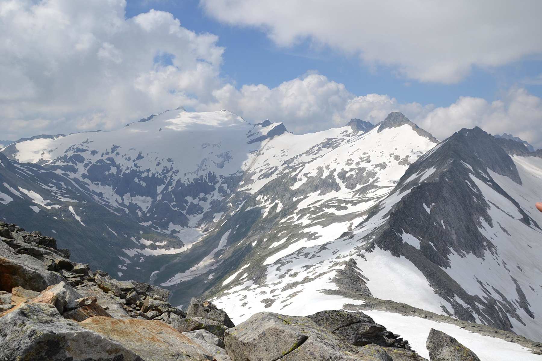 Hochalmspitze 3.360 m (Bildmitte) und im Vordergrund rechts, die Schwarzhörner 2.931 m Foto: Sepp Kendler