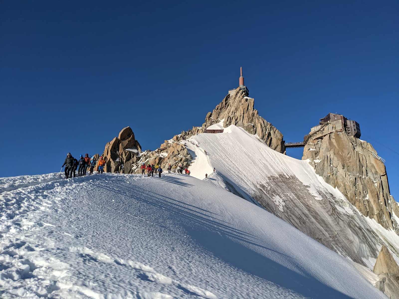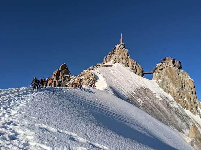 Schon der Abstieg von der Aiguille du Midi zum Refuge des Cosmiques ist spektakulär. Foto: Simone Bürgler