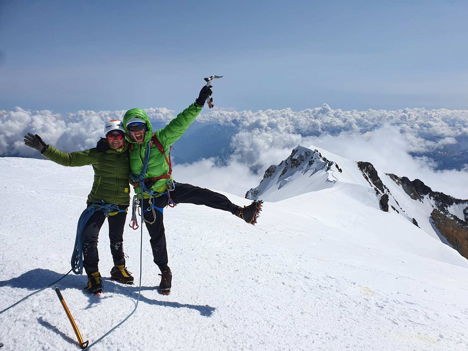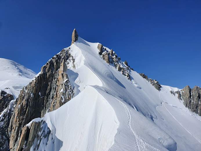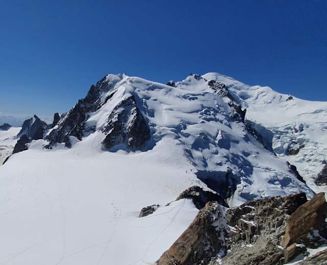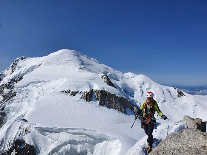 Fitte Viertausender-Sammler können ohne grossen Zusatzaufwand entweder im Auf- oder im Abstieg auch noch die Gipfel des Mont Blanc du Tacul (4.248 m) und Mont Maudit (4.465 m) besteigen.