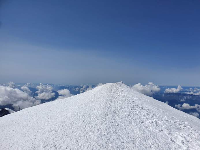 Auf dem Mont Maudit, im Hintergrund der Weiterweg zum Mont Blanc Foto: Simone Bürgler Bildergalerie (10)