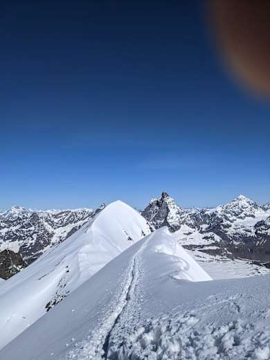Möchte man nicht wieder über die selbe Route absteigen, lohnt sich die Überschreitung zum Breithorn Westgipfel (4.162 m). So ergibt sich eine schöne Rundtour.