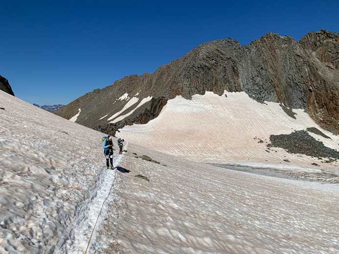 Immer links halten, nie sonderlich schwierig. Das im oberen Teil des Bildes sichtbare Schneefeld kann in der Frühsaison wesentlich größer sein und eine Schlüsselstelle der Tour darstellen. Foto: Matthias Knaus