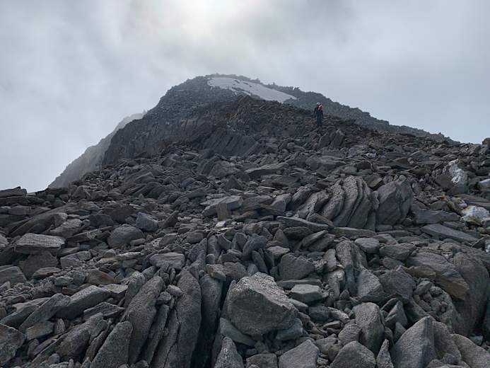 Kurz vor dem Gipfelaufbau. Das Gelände wird kurz flacher. Foto: Matthias Knaus