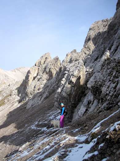 Kurz vor dem Einstieg in den Kamin (Kletterstellen) Foto: Michael Kirchmayer