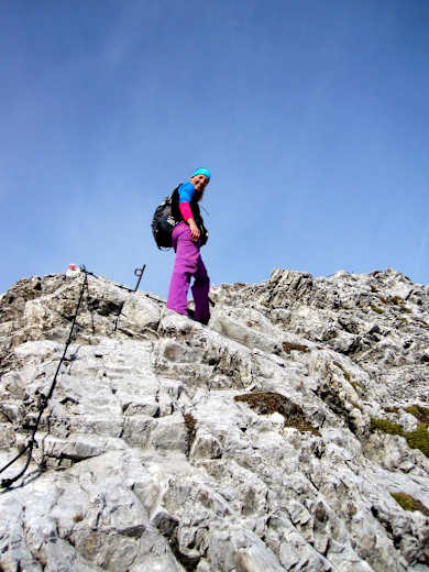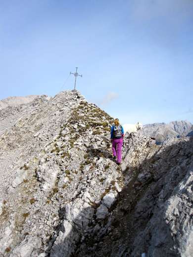 Von der Pfeishütte im Tiroler Karwendel geht es los auf die Pfeiserspitze auf 2.347 m. Der Weg ist zum Teil mit Drahtseilen versichert. Für diese Wandertour empfiehlt es sich einen Schutzhelm zu tragen, eine Klettersteigausrüstung ist nicht zwingend notwendig.