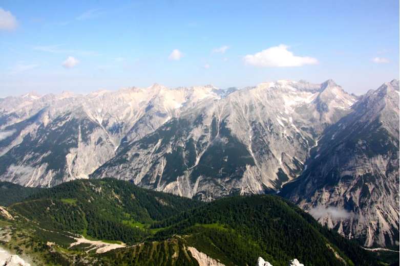 Blick von der Sonntagskarspitze ins Karwendel Foto: Michael Kirchmayer