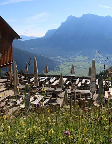 Beim gleichnamigen Restaurant rentiert es sich einen ersten Stopp einzulegen, um sich mit Tiroler Spezialitäten zu stärken und die Sonne auf der Terrasse mit Ausblick über das gesamte Inntal zu genießen.