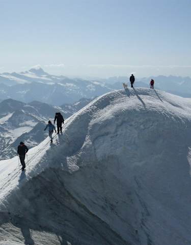 Diese alpine Hochtour bietet keine Orientierungshilfen im Gipfelbereich. Bei Nebel ist die Orientierung schwierig. Eine komplette Gletscherausrüstung ist notwendig.