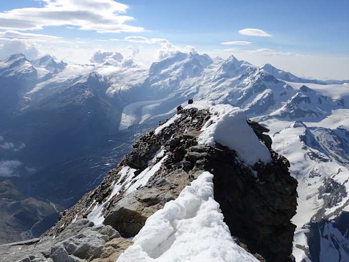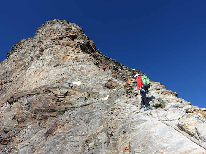 Von der Hörnlihütte geht es über den Hörnligrat auf den formschönen, pyramidenförmigen Gipfel der Walliser Alpen. Der Auf- und Abstieg erfolgt ausschliesslich in Fels und Eis und setzt ausgezeichnete Fitness und Erfahrung im Felsklettern voraus.