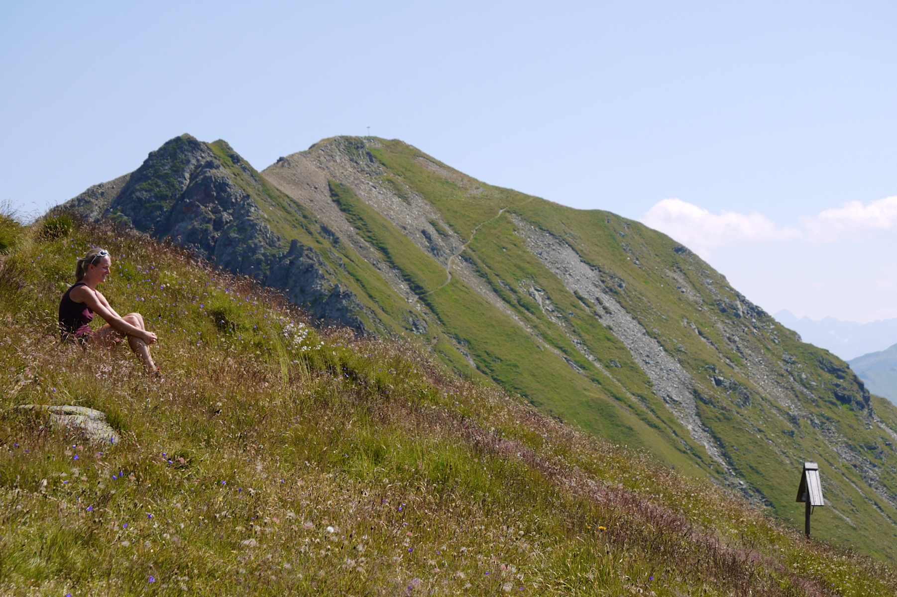 Nun geht's rechts den Grat entlang, hier wird der Weg kurz etwas steiniger, bis dir bald das große Gipfelkreuz des Speikbodens erspähen. Die letzten Meter über traumhafte Almwiesen zum Kreuz, hier bietet sich ein Jausenstopp mehr als an.