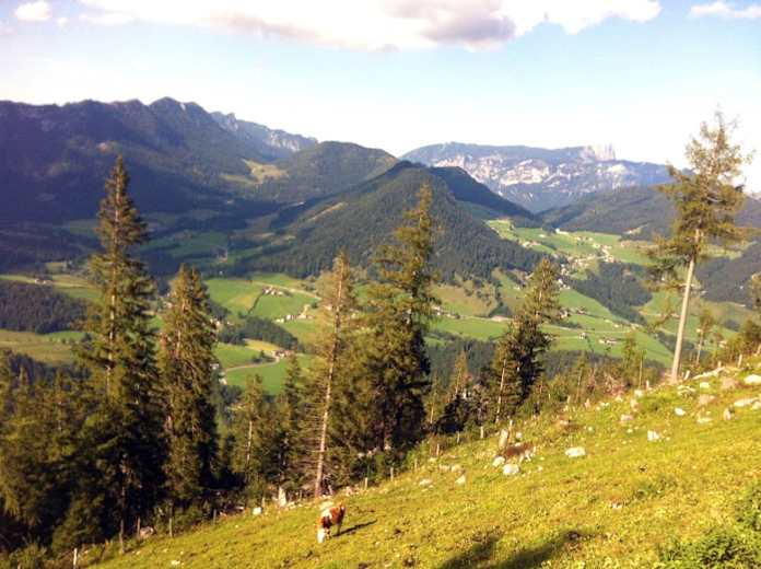 In einigen Kehren wird der sehr steile Weg gemeistert, um dann aus dem Wald heraus auf die Ebene der Schärtenalm (1.362 m) zu treffen. Hinter ihr wird der Weg flacher und man wandert unschwer mal leicht bergauf, mal bergab um eine Felsecke herum.