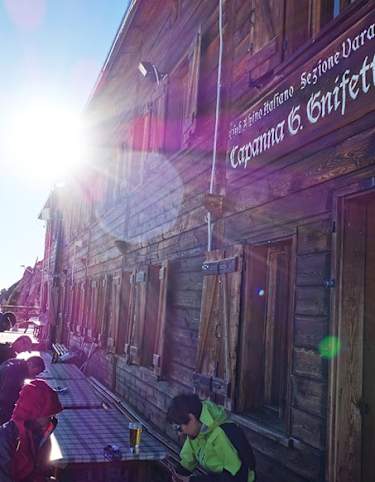 Orographisch rechts führt der Weiterweg am Balmenhorn vorbei und mit großen Schritten erreicht man tiefere Gefilde im Bereich der Gnifettihütte. Der Übergang vom Lysgletscher zum kleinen Garstelegletscher vollzieht sich logisch und nach einem weiteren Abstieg über einen mäßig geneigten Hang ist die Mantovahütte (3.498 m) erreicht. Entlang eines markierten Weges, zum Schluss über die bereits bekannte Route am Indrengletscher erreicht man die Seilbahnstation an der Punta Indren.