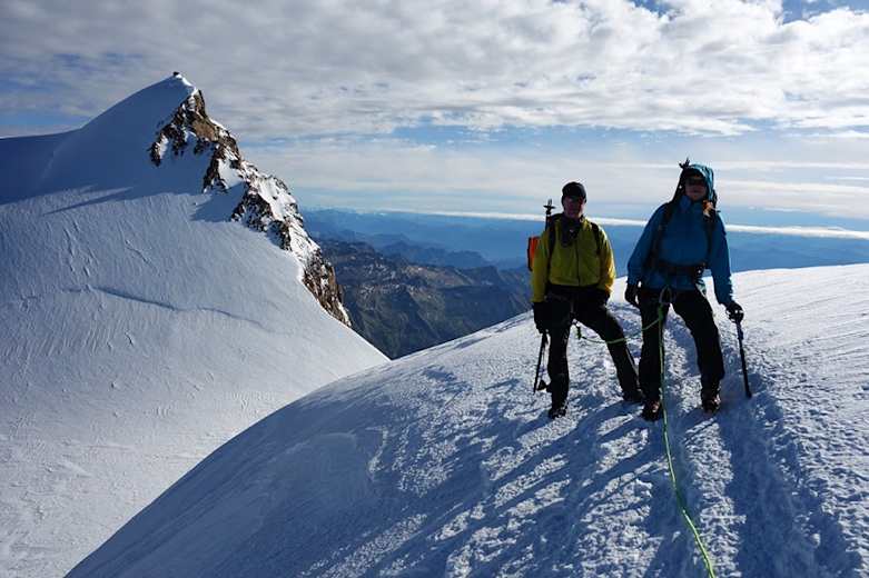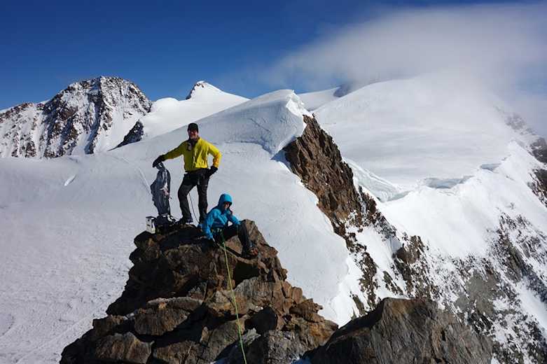 Am Gipfel der Parrotspitze (4.432 m). Es folgt ein Abstieg über einen schönen Firngrat. Foto: Matthias Knaus