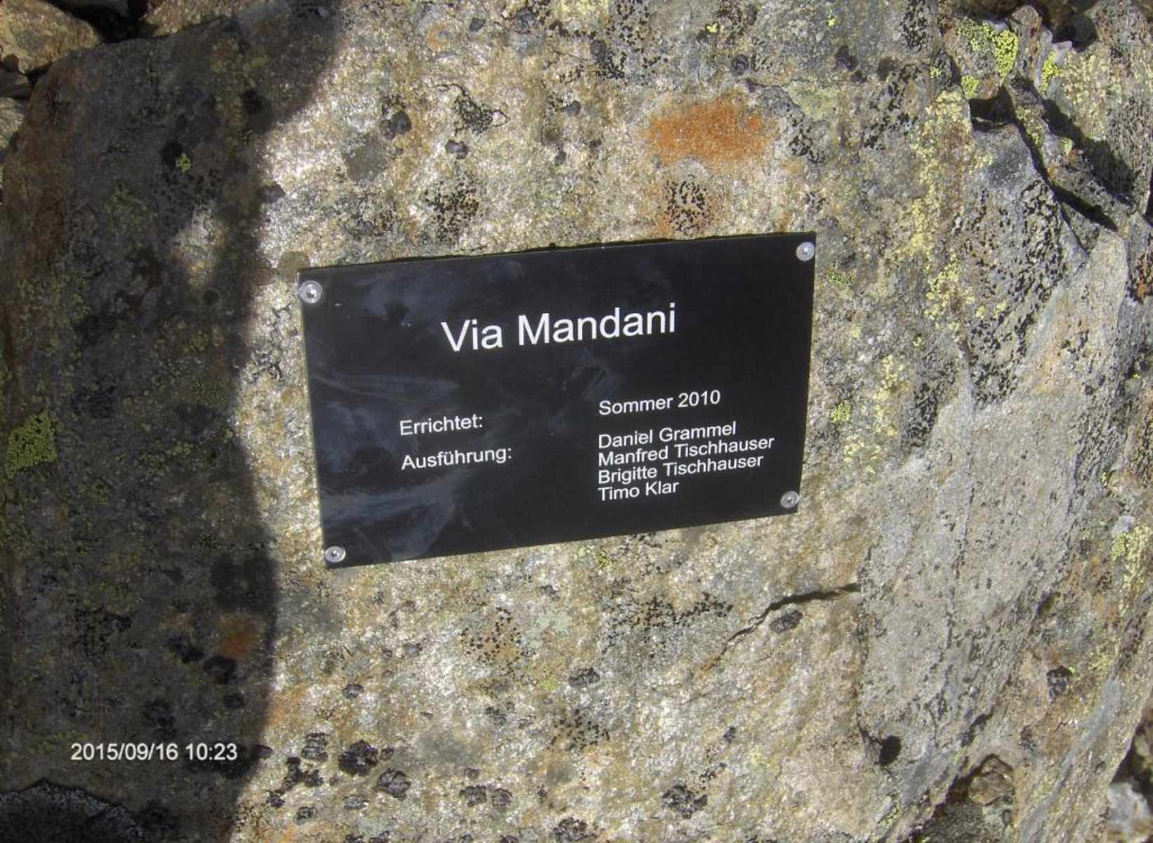 Zum Einstieg folgt man von der Pforzheimer Hütte dem Weg Nr. 145 bis zum Gleirschjöchl auf 2.751 m. Über den Grat geht es weiter bis zum Gleirscher Roßkogel auf 2.999 m. Gleich dem Gipfel beginnt nun die eigentliche Via Mandani mit Kletterstellen bis zum II. Schwierigkeitsgrad.