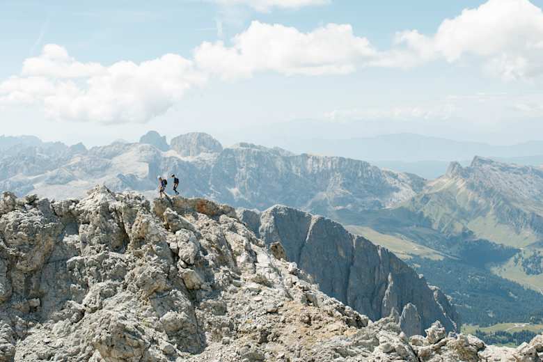 Am Weg zur Langkofelscharte Foto: Elias Holzknecht / Red Bull Media House Publishing Topo „Normalweg Langkofel“ Foto: Ivo Rabanser Mit einem Bergführer gelingt auch die Besteigung des Langkofels. Foto: Elias Holzknecht, Bergwelten Magazin Die Besteigung des Langkofels ist auch landschaftlich herausragend. Foto: Elias Holzknecht, Bergwelten Magazin Am Weg zur Langkofelscharte Foto: Elias Holzknecht / Red Bull Media House Publishing Bildergalerie (5)