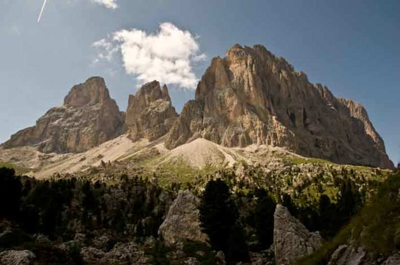 Die Fünffingerspitze ist eine sehr beliebte Klettertour in den Südtiroler Dolomiten, vor allem an Wochenenden sollte man früh unterwegs sein. Nach dem sehr kurzen Zustieg geht es im III. Grad über 300 Hm nach oben bis man den Gipfel auf 2.996 m erreicht und hinab ins Grödner Tal blickt.