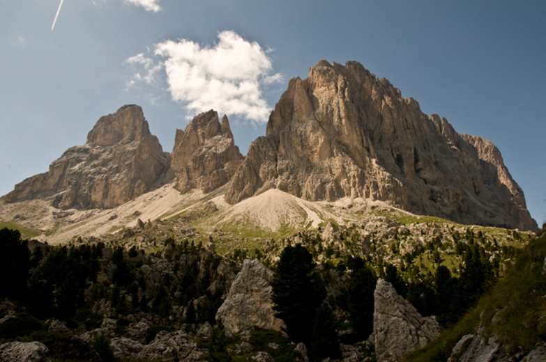Verglichen mit den bekannten Kletterrouten der Dolomiten, ist die Grohmannspitze (3.126 m) über die Dimai-Route fast schon in Einsamkeit zu erreichen. Vier bis fünf Stunden Kletterei im IV-. Grad braucht es um auf den Gipfel zu gelangen. Es lohnt sich jedoch dem Trubel vom Sellajoch zu entfliehen und in Ruhe den Ausblick ins Grödnertal zu genießen.
