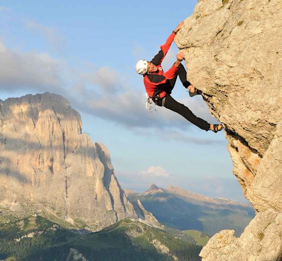 Verglichen mit den traditionellen Routen der Dolomiten ist die Tour „Sonia" noch eine recht junge Tour im Grödnertal, denn sie wurde erst 1997 erstbegangen. 300 Höhenmeter im schwierigen V. Grad geht es von der Toni-Demetz Hütte hinauf zum gleichnamigen Turm der Dolomiten auf 2.800 m.