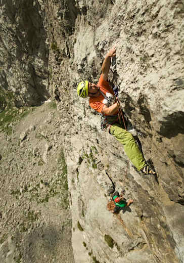 Bei dieser Tour über 4 SL werden ein 60 m-Einfachseil und 12 Expressschlingen empfohlen.