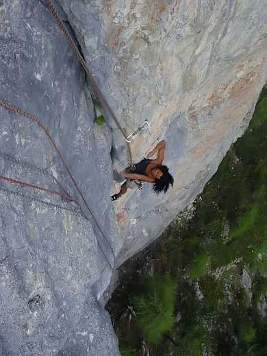 Diese Tour über 4 SL erfordert zumindest 70 m Einfachseil und 12 Expressschlingen.