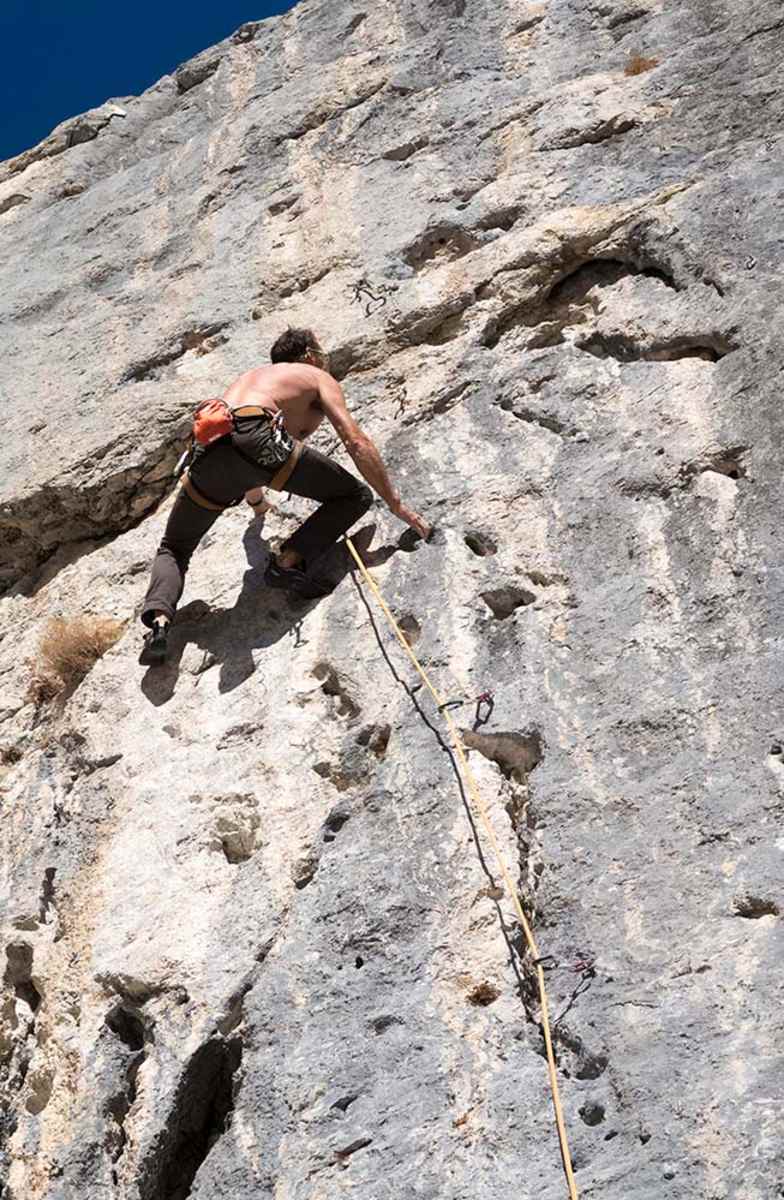 Von, kleinen und größeren Leisten, meist langen, weniger kurzen Linien, leichten Überhängen, aber auch senkrechten und stark überhängenden Wänden, wie auch großen und kleinen Löchern ist alles dabei. Dies verspricht eine immer spannende und abwechslungsreiche Kletterei.