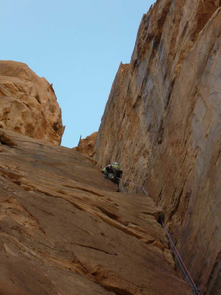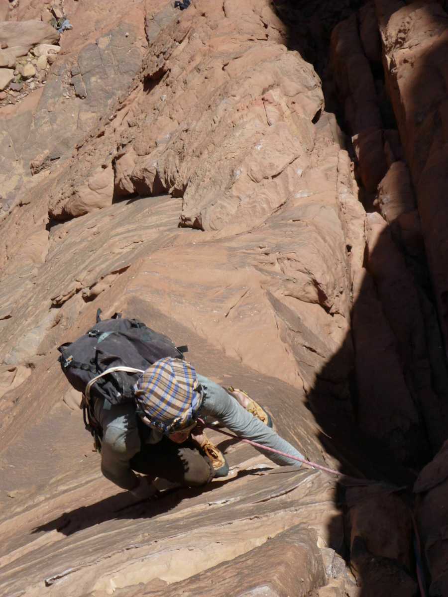 Abgeseilt wird über die Route und der Rückweg ins „Wadi Rum Village“ verläuft entlang derselben Strecke.